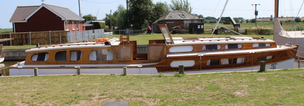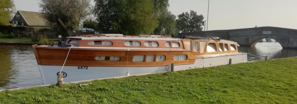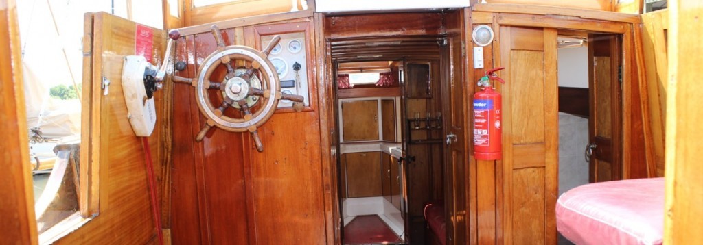 The Juliette class is the second largest cruiser built by Martham Boats at 39 feet. She is constructed of mahogany on oak frames, with beautiful mahogany bright work. The sweeping lines of the Juliette class means she is one of the most stunning and recognisable cruisers on the Broads. Retaining a lot of her original features, she defiantly stands out from the crowd. Being a 7 berth, she is an ideal family cruiser with excellent accommodation and plenty of space.