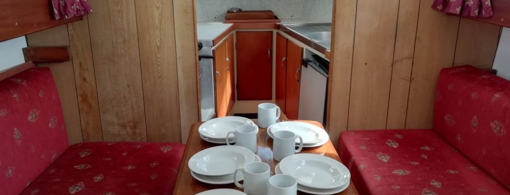 She is very well equipped and has an under counter fridge, gas cooker and hob, warm air Webasto heater and flush toilet and shower.