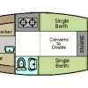 Built in 1897, this classy lady is the only Victorian counter sterned Broads yacht in hire. With accommodation for 2 and with headroom 5ft 9in raised roof decreasing forward, you can have either 2 singles or 1 double berth.